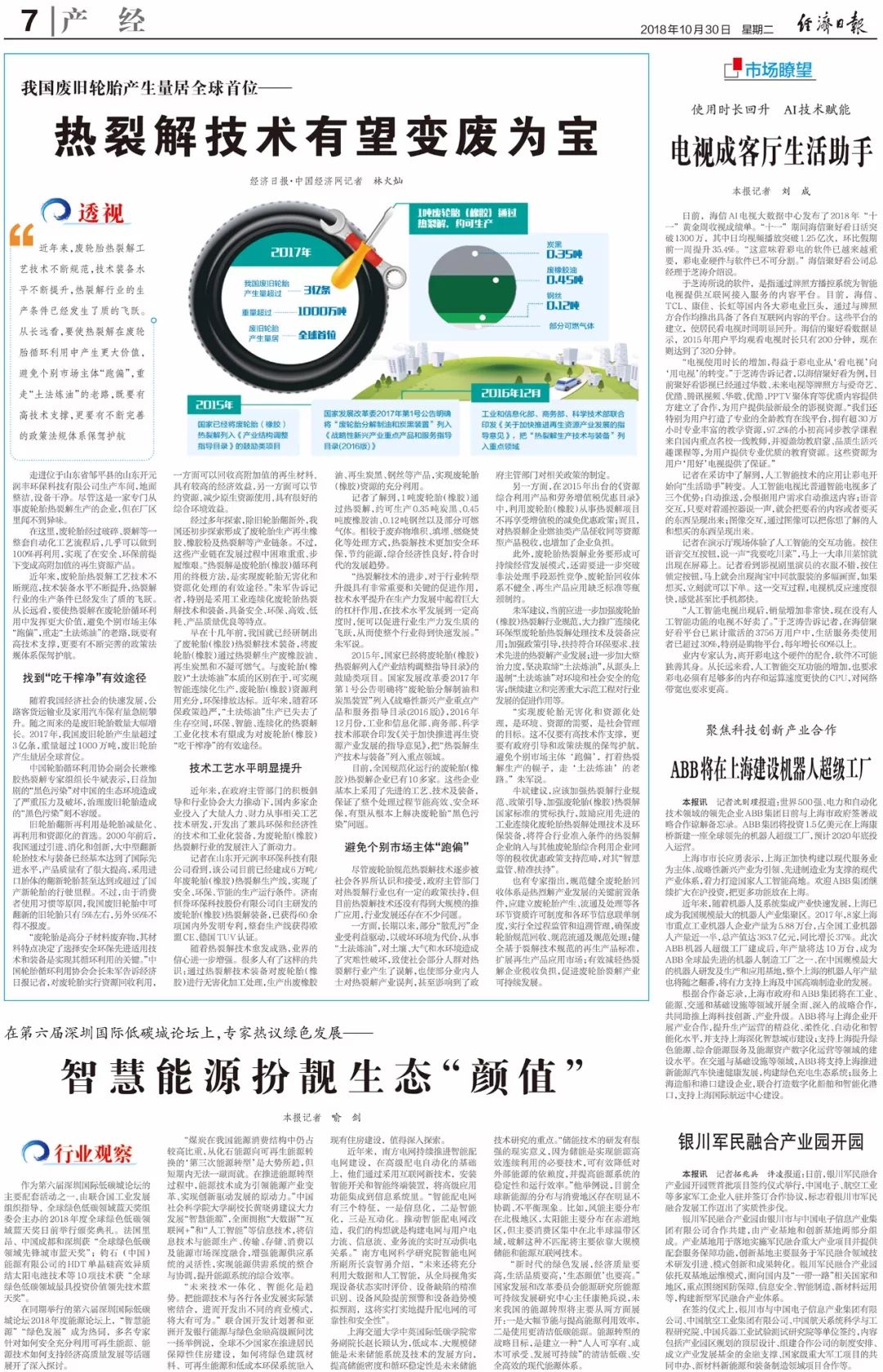 近日,《經(jīng)濟(jì)日?qǐng)?bào)》 、《中國(guó)經(jīng)濟(jì)網(wǎng)》主任記者林火燦采訪了中國(guó)輪胎循環(huán)利用協(xié)會(huì)會(huì)長(zhǎng)朱軍以及中國(guó)輪胎循環(huán)利用協(xié)會(huì)副會(huì)長(zhǎng)兼橡膠熱裂解專家組組長(zhǎng)、濟(jì)南恒譽(yù)環(huán)保科技股份有限公司董事長(zhǎng)牛斌及行業(yè)相關(guān)專業(yè)人士,并參觀了采用濟(jì)南恒譽(yù)環(huán)保技術(shù)裝備,入選工信部《廢輪胎綜合利用行業(yè)準(zhǔn)入條件》的廢輪胎熱裂解項(xiàng)目,就廢輪胎污染、循環(huán)再生利用技術(shù)、熱裂解行業(yè)發(fā)展前景及相關(guān)政策等問(wèn)題與各位專家進(jìn)行了深入交流。并依據(jù)采訪內(nèi)容撰寫(xiě)題為《我國(guó)廢舊輪胎產(chǎn)生量居全球首位——熱裂解技術(shù)有望變廢為寶》的文章,刊登于《經(jīng)濟(jì)日?qǐng)?bào)》。
