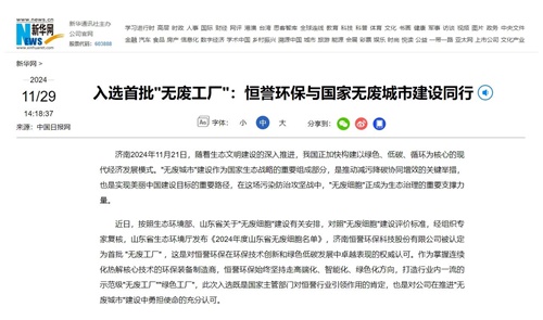 新華社旗下新華網(wǎng),環(huán)球時報旗下環(huán)球網(wǎng)等國內(nèi)多家知名媒體,以《入選首批“無廢工廠”:恒譽(yù)環(huán)保與國家無廢城市建設(shè)同行》為題,報道了恒譽(yù)環(huán)保響應(yīng)國家生態(tài)文明建設(shè)號召,在“無廢城市”建設(shè)中做出了突出貢獻(xiàn)。文章指出,恒譽(yù)環(huán)保在資源化技術(shù)創(chuàng)新、綠色低碳發(fā)展、打造一流無廢工廠等方面起到了行業(yè)引領(lǐng)示范作用。原文如下:
